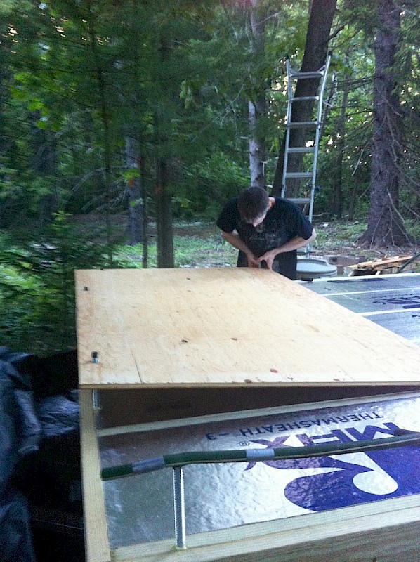 On Saturday 7/2/16, Mikey finished cutting the last remaining piece of 5/8” plywood subfloor and fastening it in place. There was a fairly quiet but enjoyable celebration of the accomplishment (probably some iced tea - no cake). The plywood is arranged in six large and six smaller pieces, covering the six major rectangular spaces formed by the framing beneath. Because a single piece of 8’ ply would not span the… View More