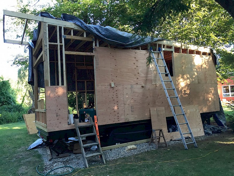 Although we had been very meticulous about checking the trailer and subfloor for squareness by measuring full-length diagonals across it, we didn’t - for whatever reasons - do likewise with the raised framing walls. I think we were lulled into some complacency by several things: (1) the fact that the floor kept appearing to be… View More