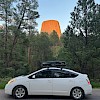 I have a 1200 watt inverter wired up to my starter battery. Turning on the car and powering on the inverter gives me 1200 watts of AC power, and because the Prius is a hybrid, the engine only runs when the hybrid battery needs a boost.