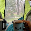 Instead of carrying your coffee grounds around in your camper where they’ll promote mold growth or tossing them into a garbage can where they’ll be shipped off to be eternally preserved in a giant diaper in the ground (a.k.a. a sanitary landfill), you can responsibly return them back to the environment by spreading the grounds out in some nearby bushes. Coffee grounds will biodegrade readily and make great compost. One exception to this would be if you’re camping in bear country, as the scent could attract their attention. The paper filter is biodegradable too, but it will look like litter in the meantime, so it may be best to put that in the garbage if you don’t have a compost pile nearby.